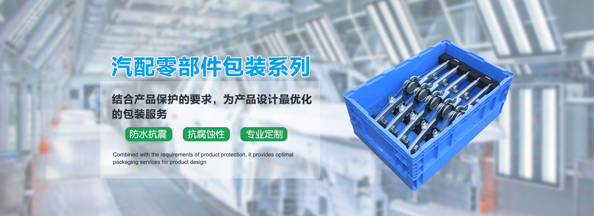 為汽車(chē)行業(yè)提供標(biāo)準(zhǔn)化的物流包裝,并根據(jù)客戶的零部件規(guī)格,提供內(nèi)襯定制化的服務(wù),包裝零部件在運(yùn)輸過(guò)程中的安全、防震動(dòng)、防跳動(dòng)、防碰撞、防刮傷、防灰塵,保護(hù)更徹底牢固。